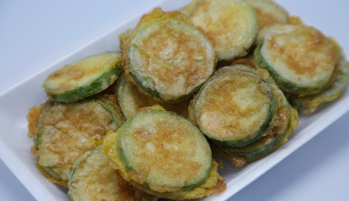 - 재료: 애호박 1/2개, 부침가루(또는 튀김가루), 계란 1개, 소금 약간, 식용유